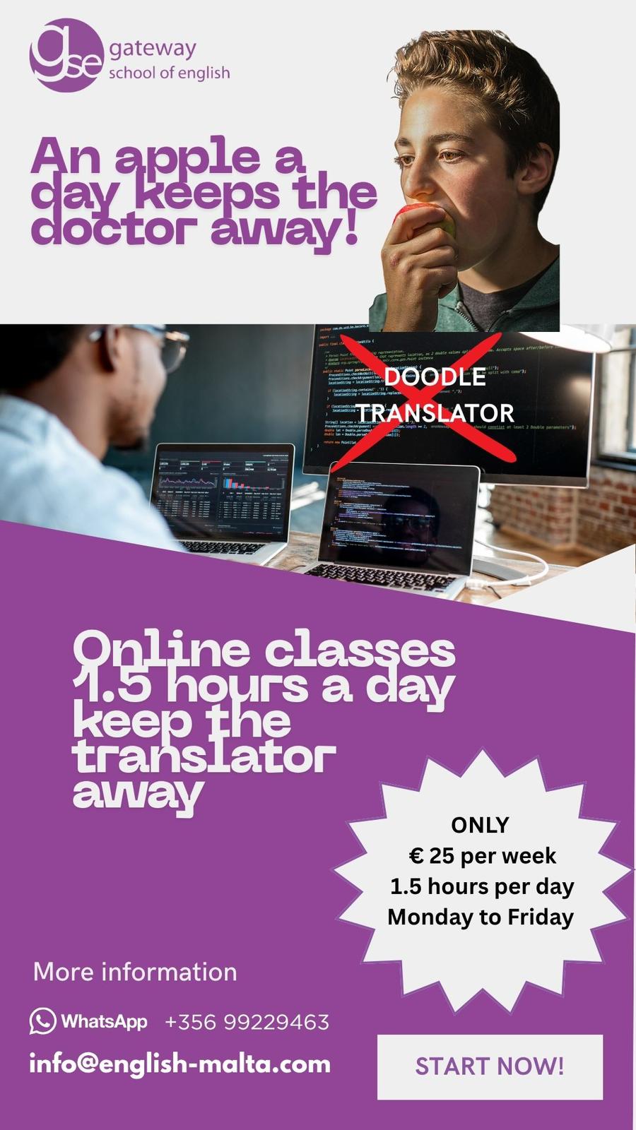 An Apple a Day Keeps the Doctor Away… and 1.5 Hours of English a Day Keeps Google Translate Away!